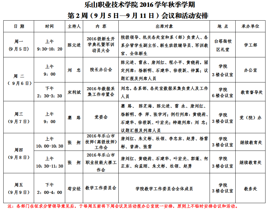 第2周(9月5日—9月11日)会议和活动安排