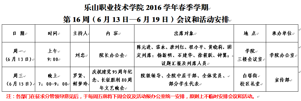 第16周(6月13日-6月19日)会议和活动安排