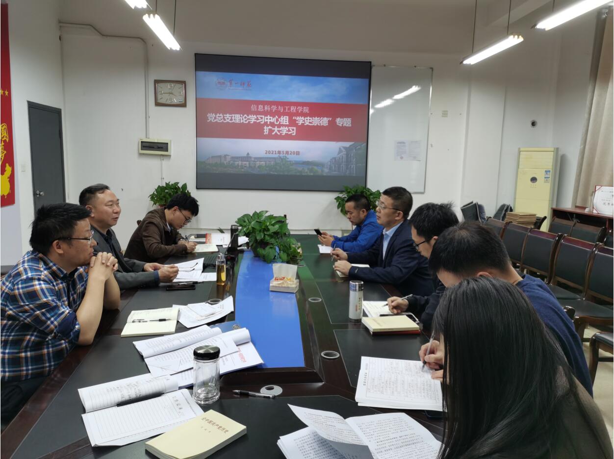 5月20日下午,学院党总支理论学习中心组在玉衡北407开展“学史崇德”专题扩大学习活动。学院领导、党总支委员及伟德官网学校第二次党代会代表参加。活动由党总支书记王杰文主持。