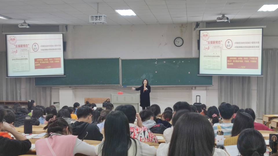 4月22日,在以“拒腐倡廉,风正远行—谈当代大学生廉洁修身的重要意义与主要途径”为主题的党课中,学校纪委办公室主任袁向荣详细阐述了当代大学生廉洁修身的三条主要途径:一是践行核心价值,培养诚信人格;二是学习政策法规,增强规则意识;三是学习廉洁典范,修炼四大作风。袁向荣诠释了廉洁修身的内涵,并列举廉洁典范加以说明,强调大学生廉洁修身是高校人才培养的需要,是高校廉洁文化建设的需要,是构建和谐社会的需要,也是弘扬中华民族传统美德的需要。