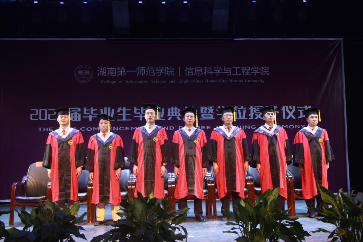 8时57分,现场人员全体起立,在热烈的掌声和激昂的校歌声中,学院领导及教授代表进入会场并入座。9时许,全体人员庄严肃立,高唱国歌,信息科学与工程学院2021届毕业生毕业典礼暨学位授予仪式正式拉开序幕。