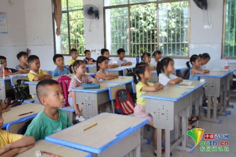 图为课堂上,小朋友们认真听着队员讲课,眼神中充满了对知识的渴望。中国青年网通讯员 欧阳健 摄