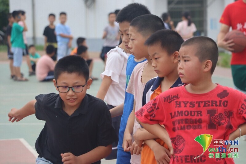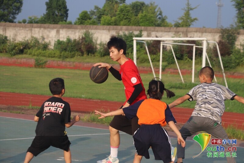 图为孩子们跟老师进行一场“5对1”的篮球赛。 中国青年网通讯员 段新利 摄