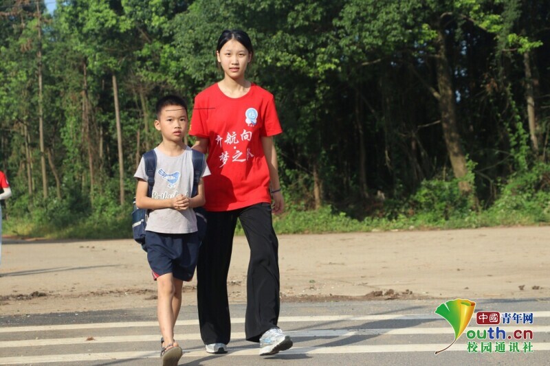 图为老师护送没有家长接送的学生回家。中国青年网通讯员 欧阳健 摄