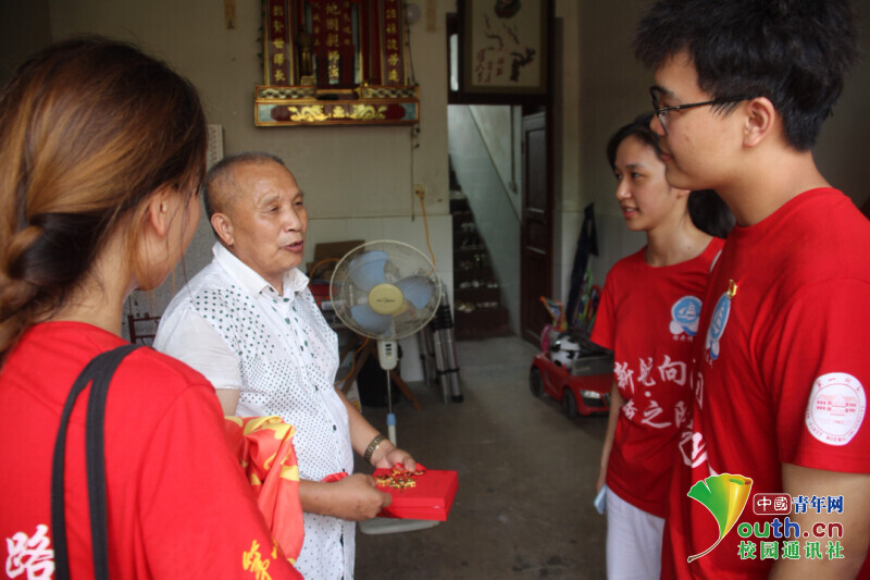 图为新航向·梦之队志愿者们与老党员合影留念。中国青年网通讯员 欧阳健 摄