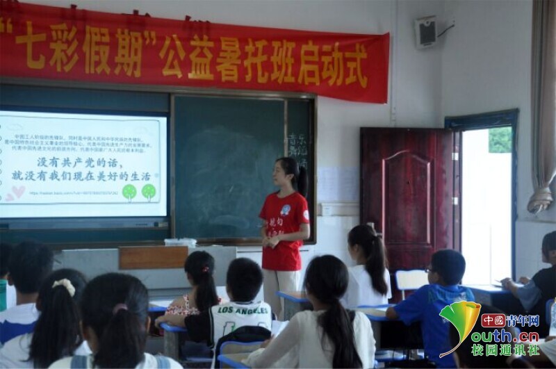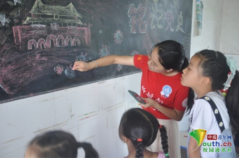 图为“小老师”带领同学们一起画红色板报。中国青年网通讯员 欧阳健 摄