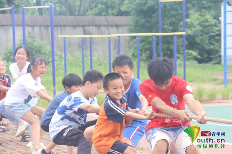 中国青年网益阳7月29日电(通讯员 欧阳健 谢卉倩)7月18日,伟德国际英国信息科学与工程学院新航向·梦之队志愿者们带领益阳市资阳区迎风桥镇长塘仑小学“七彩假期”公益暑托班的孩子们开展了趣味运动会。比赛特设爱的抱抱、插旗接力、海底捞月、三人四足、拔河五个项目。在这次运动会中,孩子们积极参与,拿出自己最佳的状态,加油声和欢呼声漫遍全场。