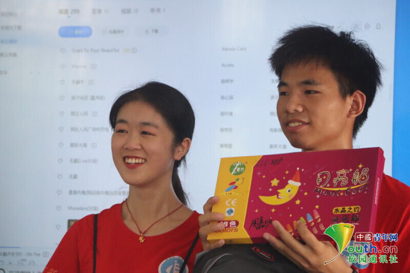 图为结班仪式上志愿者为孩子们颁发准备好的精美奖品。中国青年网通讯员 段新利 摄