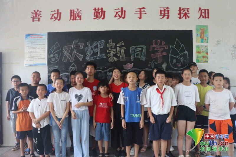 图为新航向·梦之队队员和孩子们的临别合照,他们以合照开始,又以合照结束。中国青年网通讯员 段新利 摄