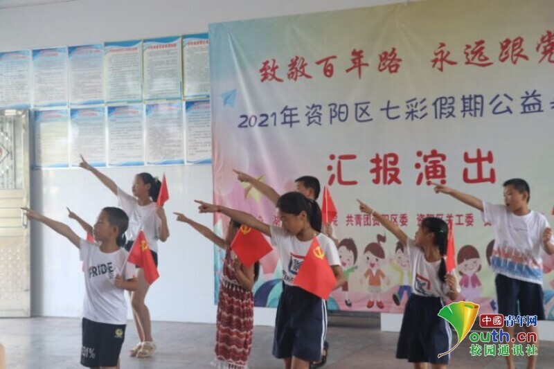 中国青年网益阳8月11日电(通讯员 黄波 张航行)为展示伟德国际英国信息科学与工程学院新航向·梦之队赴迎风桥镇乡村振兴实践团到益阳市资阳区迎风桥镇长塘仑小学暑期“三下乡”社会实践成果,志愿者开展以“致敬百年路,永远跟党走”为主题的艺文汇演活动。7月24日,全体学生以及队员做好充分表演准备,在上午九点准时开展文艺汇演活动。队员们用一场精彩纷呈的文艺汇演为此次长达半个月的支教画上了圆满的句号。