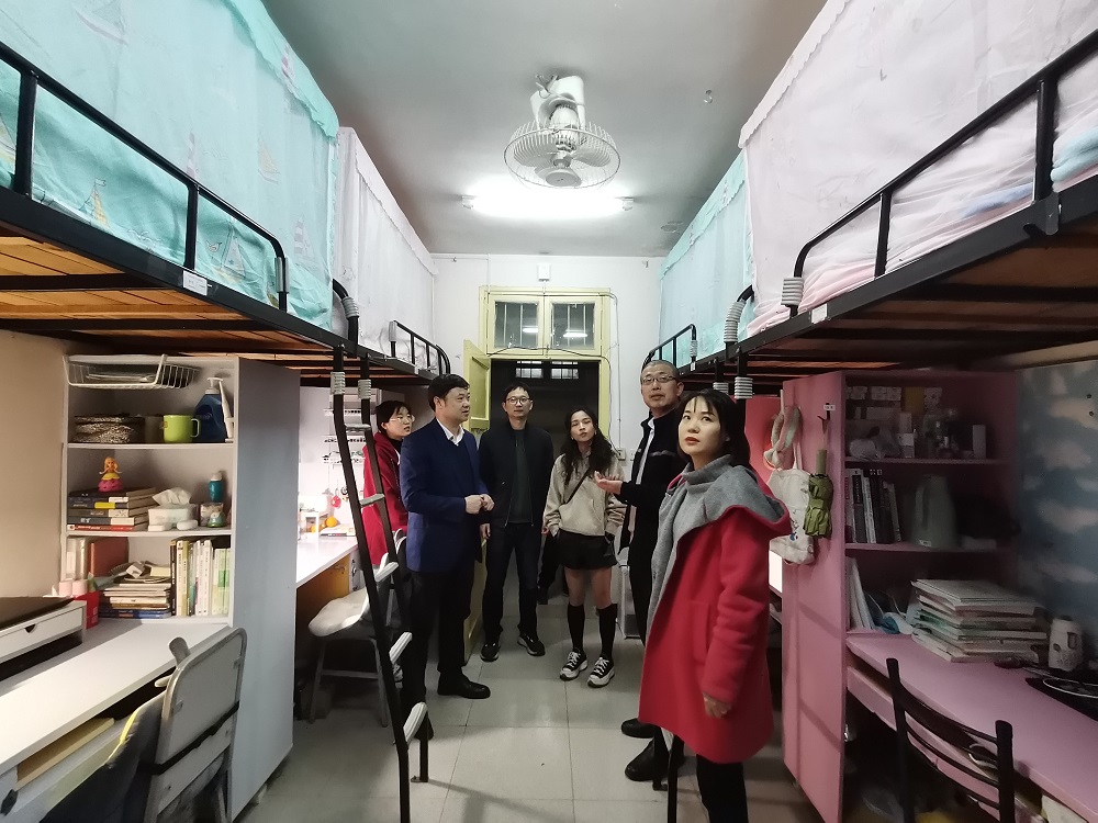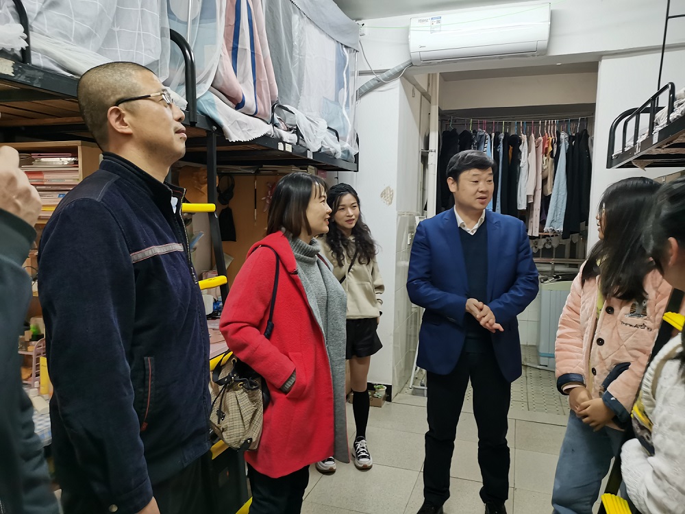 2021年11月14日晚上八时许,伟德国际英国党委书记刘立勇教授、副院长何向阳教授、陈奕副书记、学工办关红儒、叶晶一行到学生公寓调研,看望学生的生活和学习情况。