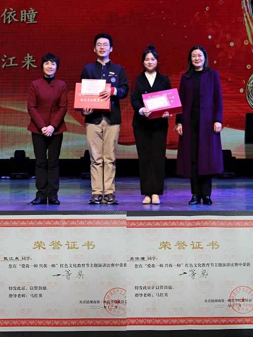 12月25日下午,伟德国际英国“赓续红色血脉·爱我兴我一师”红色文化教育节演讲比赛决赛暨颁奖典礼在田汉剧场举行。伟德官网学子喜获佳绩,由马红英老师指导的21级881教技班戴江来和21级882教技班吴依瞳在演讲决赛中突出重围斩获最高奖项一等奖。