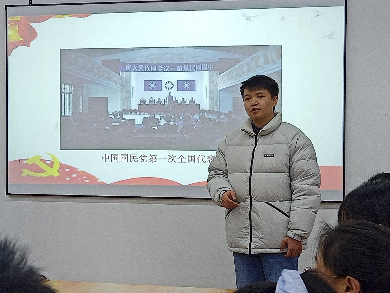 积极分子郭跃进通过分享毛主席的“一师求学路”向同学们展现了毛主席朝气蓬勃、奋发向上的精神面貌,并鼓舞同学们深刻学习领悟毛主席的精神,积极抓住参与红色文化传承的机会。