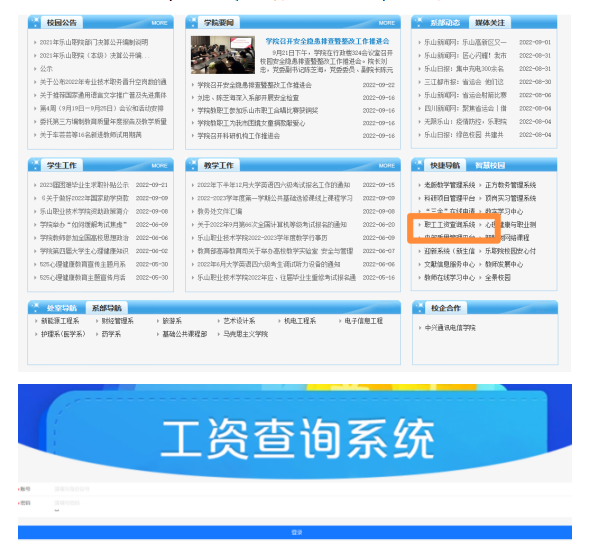 学院官网主页—快捷导航—职工工资查询