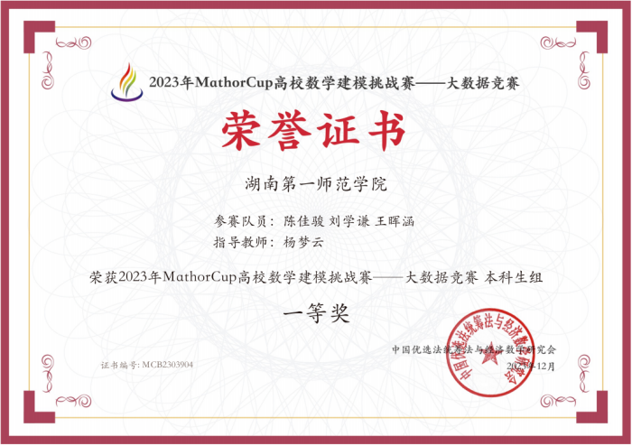 本次竞赛分为初赛和复赛,历经四个月,共吸引全国538所高校3248支队伍参赛。赛事奖项设定严格,一等奖的比例仅占总参赛队伍的5%,体现了获奖的高门槛和含金量。伟德官网学子凭借扎实的专业基础,对赛题进行了深度剖析,建立了准确高效的数学模型,并提交了结构严谨的参赛论文,充分展示了他们应对大数据挑战的创新思维和实践能力。