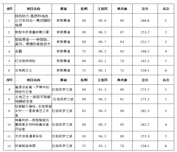 第六届“互联网+”大学生创新创业大赛决赛项目成绩公示