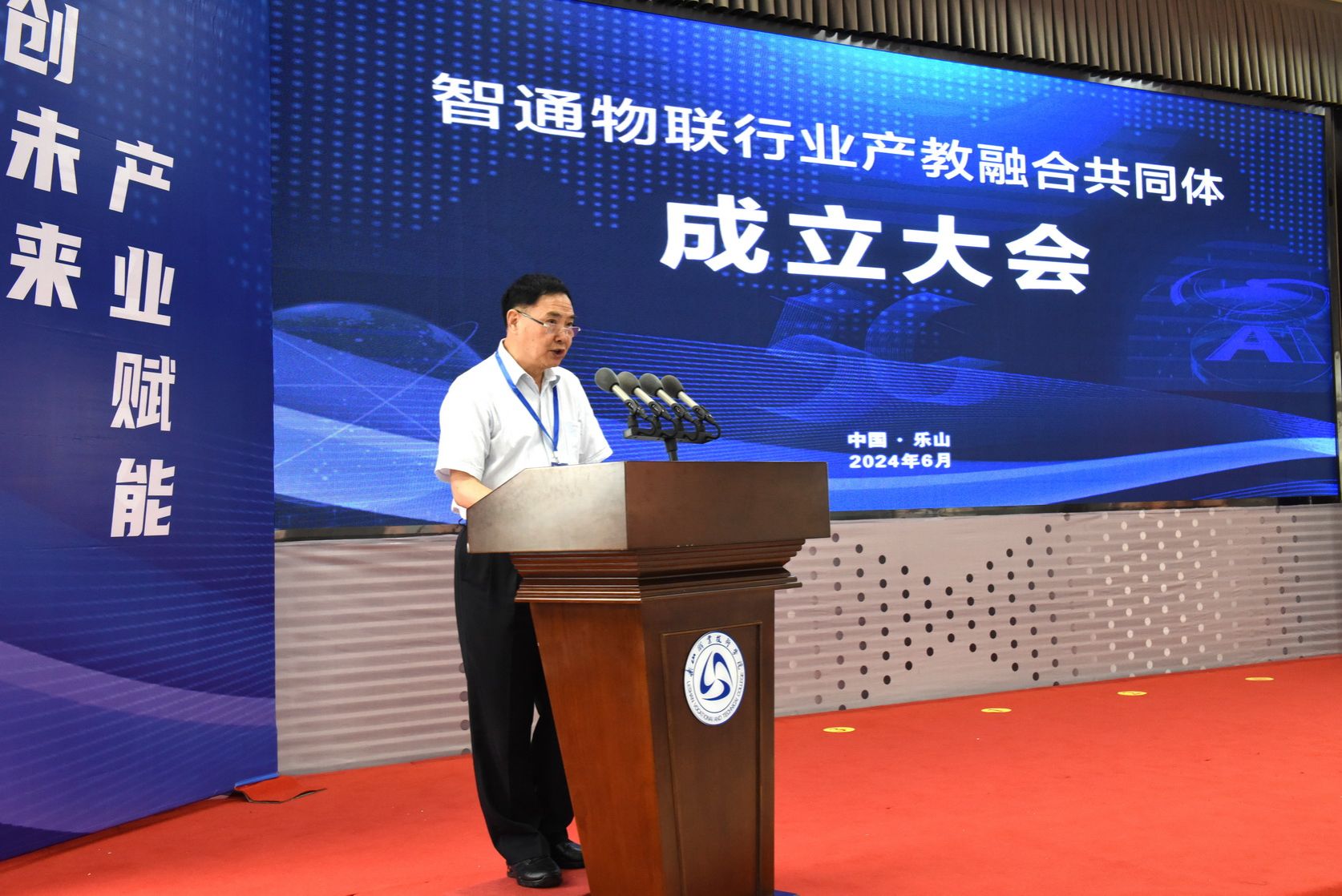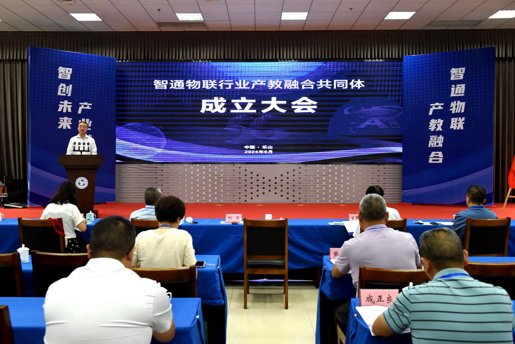 6月21日上午,智通物联行业产教融合共同体(以下简称共同体)成立大会在四川乐山成功举办,共同体由工业和信息化部教育与考试中心作为指导单位,北京华晟经世信息技术股份有限公司、四川农业大学、beat365英国官方网站为牵头单位。成立大会由beat365英国官方网站、北京华晟经世信息技术股份有限公司承办,beat365英国官方网站校长刘忠、四川农业大学信息工程学院党委书记王中成、四川省计算机学会秘书长宋昌元、四川省电子学会向涛、北京华晟经世信息技术股份有限公司执行副总裁梁舒等出席大会,与50余家来自全国各地AIOT行业相关的本科高校、职业院校、科研院所、龙头企业、行业协会的专家教授及代表们共同见证了共同体的正式成立。会议由beat365英国官方网站党委委员、副校长周芹主持。