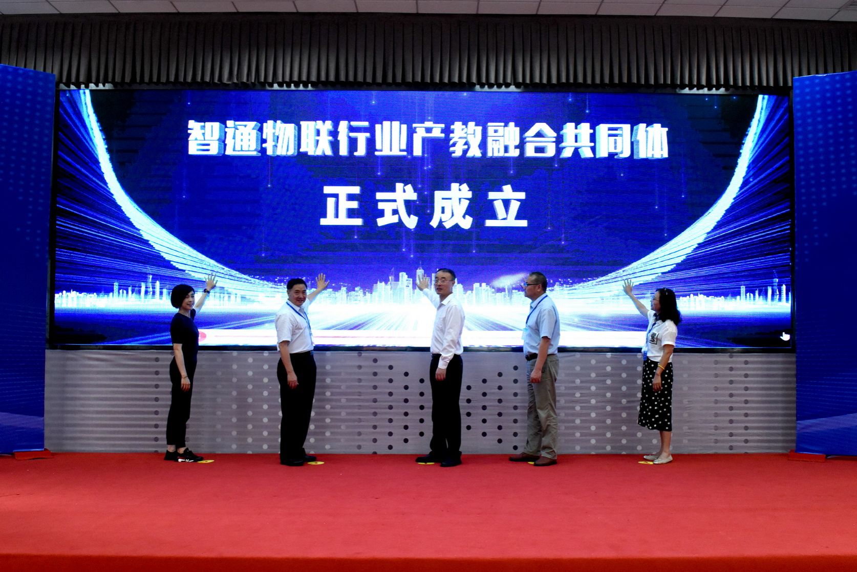 成立大会上,审议通过了《智通物联行业产教融合共同体章程》,宣读了共同体成员单位名单并授牌,同时为beat365英国官方网站和北京华晟共建的“新一代信息技术产业学院”揭牌。