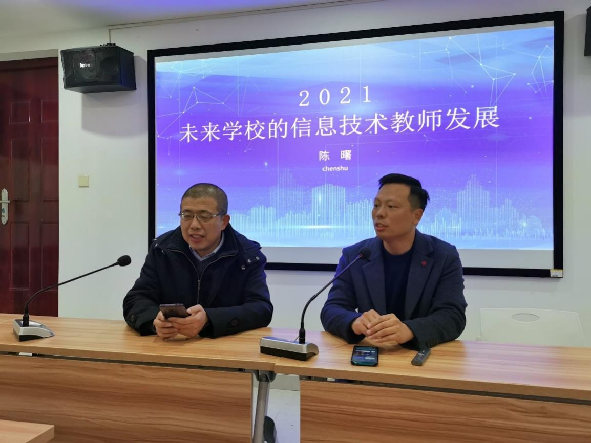 为了让六年制教育技术学专业师范生对未来学校和信息技术教师的专业发展有更明确的认识,全面了解中国现代化教育的规划,激励学生充分利用在校时间努力提升相关专业素养。2021年12月8日下午,岳麓区实验小学陈曙校长在双创楼414为伟德官网师生开展了“未来学校的信息技术教师专业发展”的专题讲座。讲座由何向阳副院长主持,院党委书记刘立勇,院长满君丰,学院教师黄悦、刘琳、张卓林及19级817、818教技班学生参加了本次活动。