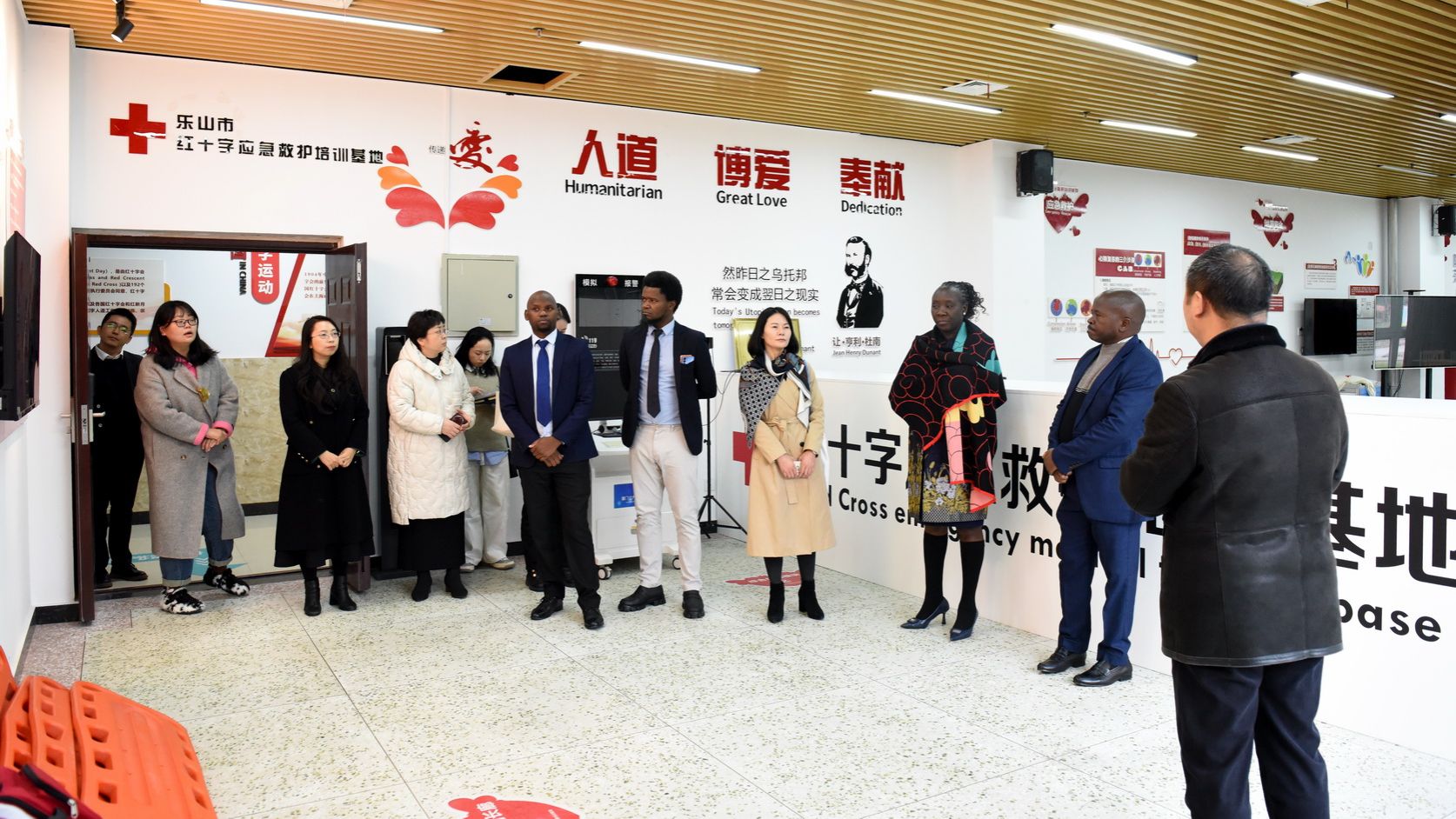 25日下午,在学校党委委员、副校长周芹的陪同下,赞比亚代表团一行饶有兴趣地参观了学校青江武术基地并观摩了留学生武术课堂展示;在嘉州记忆▪地情文化馆,了解了乐山的历史沿革和非遗文化;在智慧能源中心,系统了解了beat365水源热泵系统;参观考察了医学实训中心、智能制造协同创新中心、工业机器人系统集成实训中心、光伏新能源虚拟仿真实训中心等实训基地。