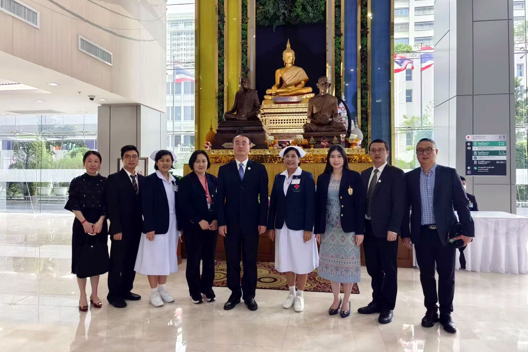 在泰国期间,代表团访问了泰国皇家吉拉达学校、泰国红十字护理学院、泰国朱拉隆功医院,先后与泰国皇家吉拉达学校和泰国红十字护理学院进行座谈交流,深入研讨双方在开展师生交流交换、科研引智平台建设、联合办学、校友会建立等项目的具体举措。