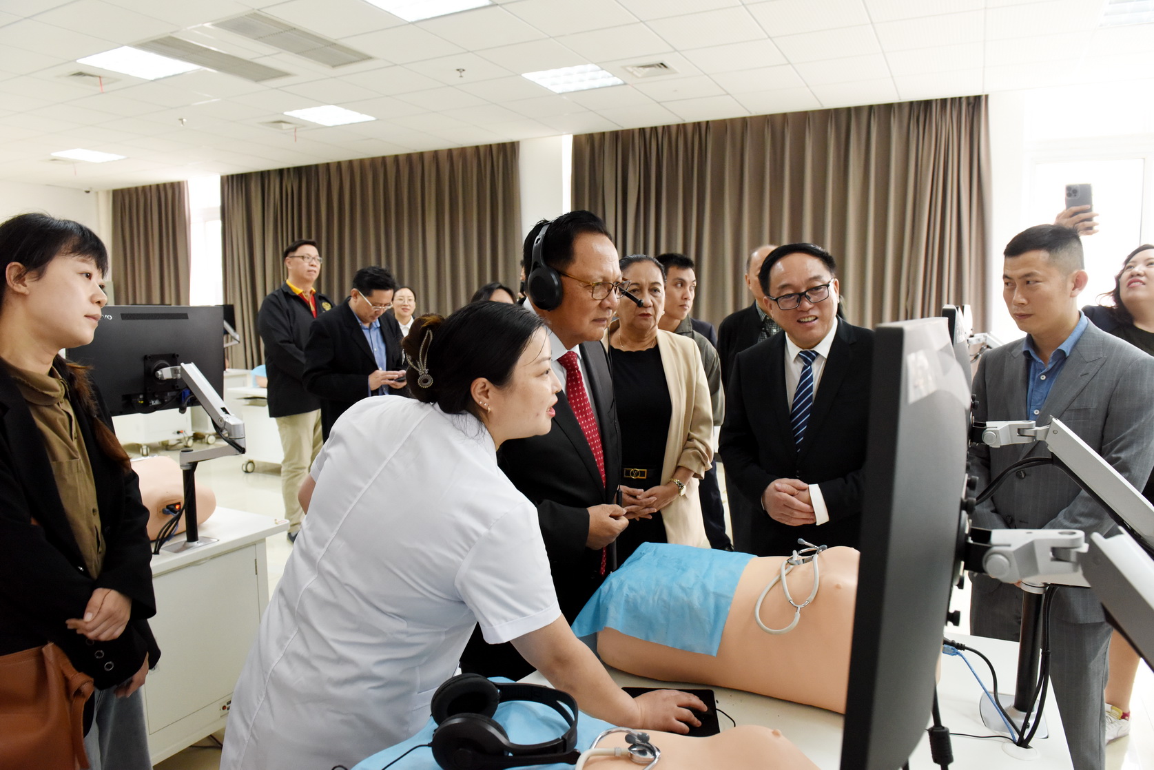 劳尔·兰比诺一行首先来到礼堂观看了学院宣传片,随后在青江武术基地观看学生武术训练,在1号实训楼医护实训室、多晶硅实训基地、工业机器人技术实训基地、汽车维修实训基地和学术交流中心参观考察。