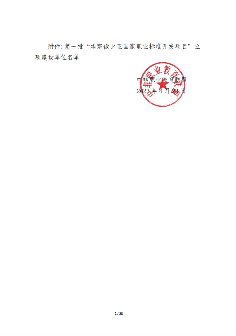 “埃塞俄比亚国家职业标准开发项目”由埃塞俄比亚国家职业教育委员会引进中国职业教育资源,针对埃塞俄比亚国家重点行业职业技能岗位,优选中国同等数量的职业标准,经本土化修订后,按照埃塞俄比亚国家相关流程注册认证,与配套专业教学标准一并纳入埃塞俄比亚国家职业教育体系,指导埃塞俄比亚国家职业院校开展人才培养工作。