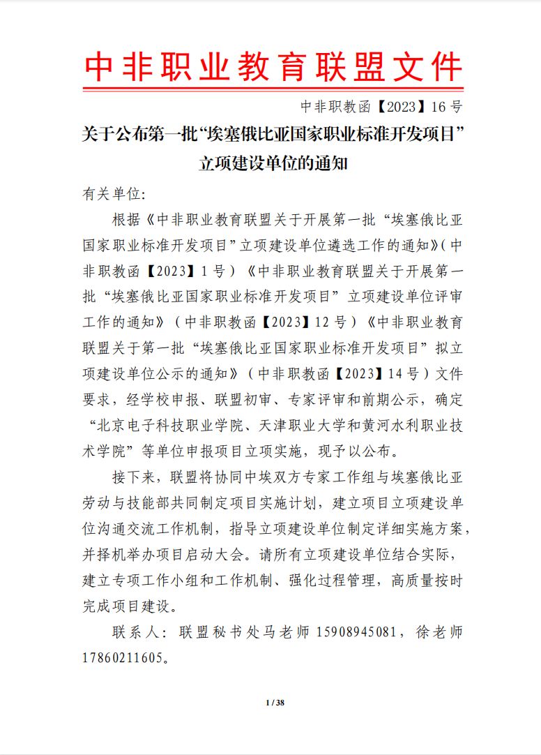 2023年4月23日,中非职业教育联盟公布了第一批“埃塞俄比亚国家职业标准开发项目”立项建设单位。经学校申报、联盟初审、专家评审、前期公示,beat365英国官方网站成为护理技术员/工程师3级牵头单位、动物繁育技术员/工程师3级牵头单位以及机械加工技术员/工程师4级参与单位。