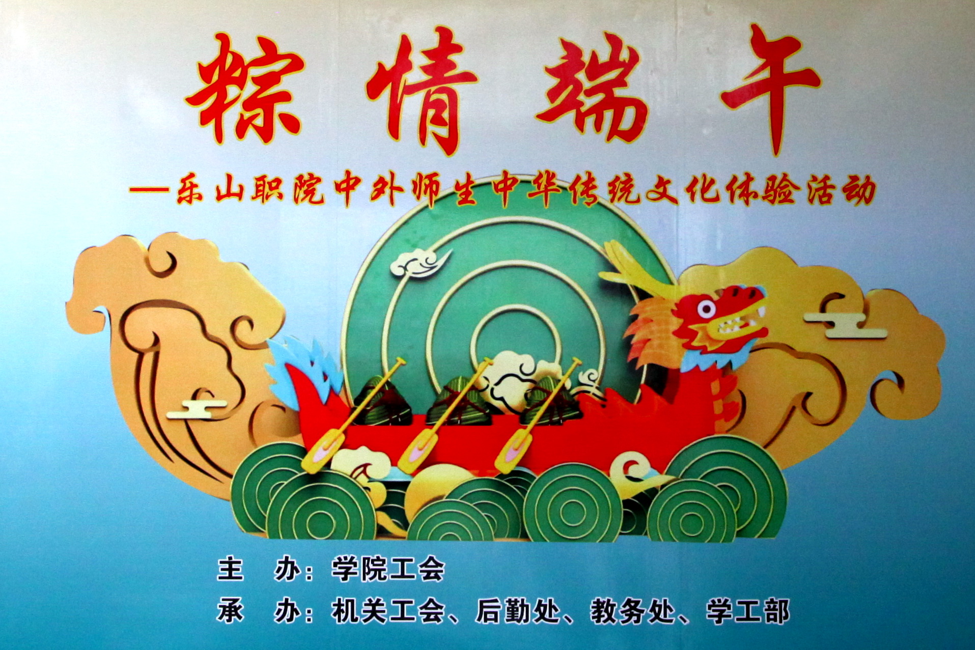 为了使学院中外师生感受传承中华民族传统文化,体验端午民俗, 6月1日下午,由学院工会主办,机关工会 、后勤处、教务处、学工部承办的“粽情端午”乐山职院中外师生中华传统文化体验活动在学院一食堂举行。