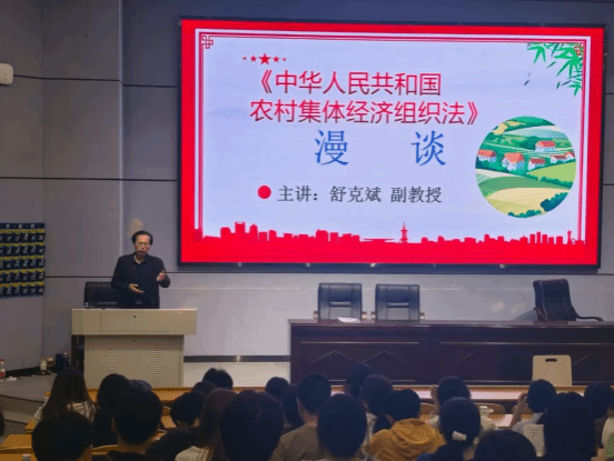 4月25日晚,计算机学院专职组织员舒克斌在怀中南110教室为伟德国际英国、智能制造学院2025年春季学期入党积极分子讲授题为《中华人民共和国农村集体经济组织法》的专题党课。