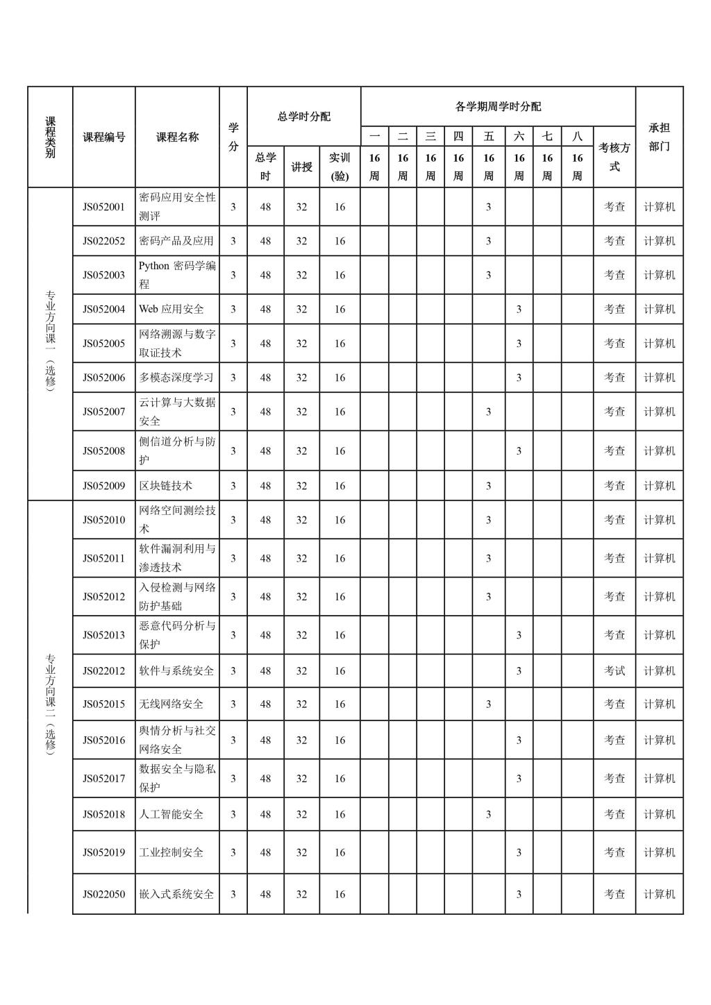 商用密码特色班本科人才培养方案