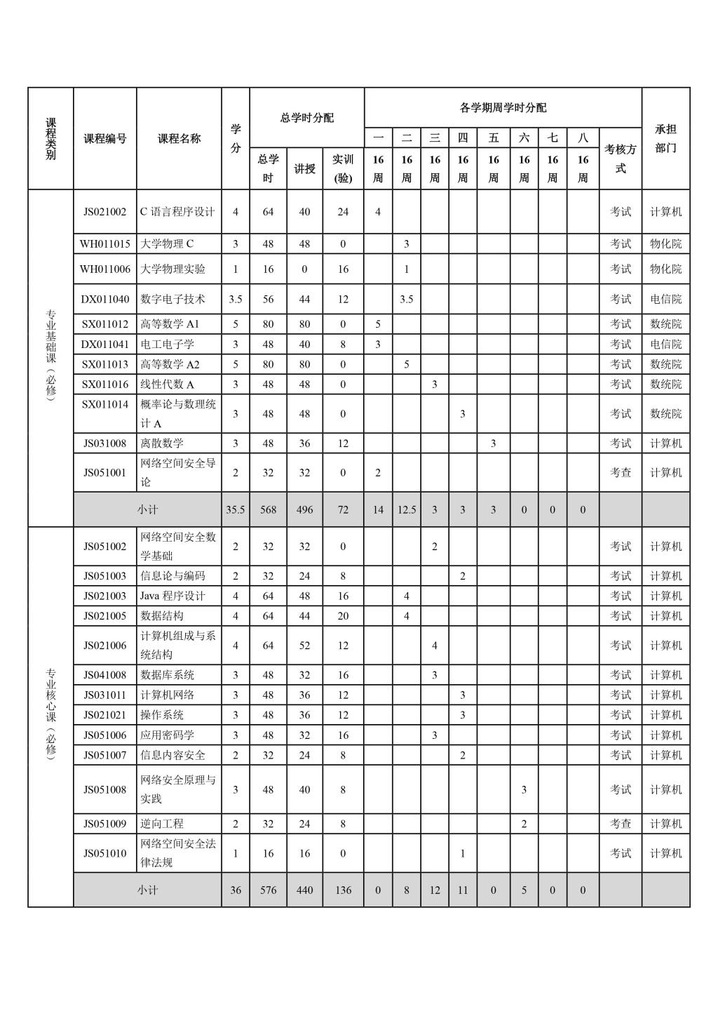 网络空间安全专业本科人才培养方案