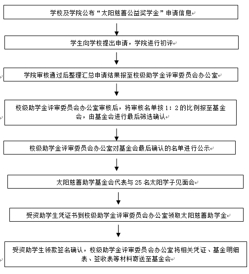 根据学校学生工作部《关于评定2019年太阳慈善助学基金会“公益奖学金”的通知》(以下简称《通知》,详见附件1)文件要求,结合伟德官网际,现将2019年太阳慈善助学基金会“公益奖学金”评定工作的有关事项通知如下: