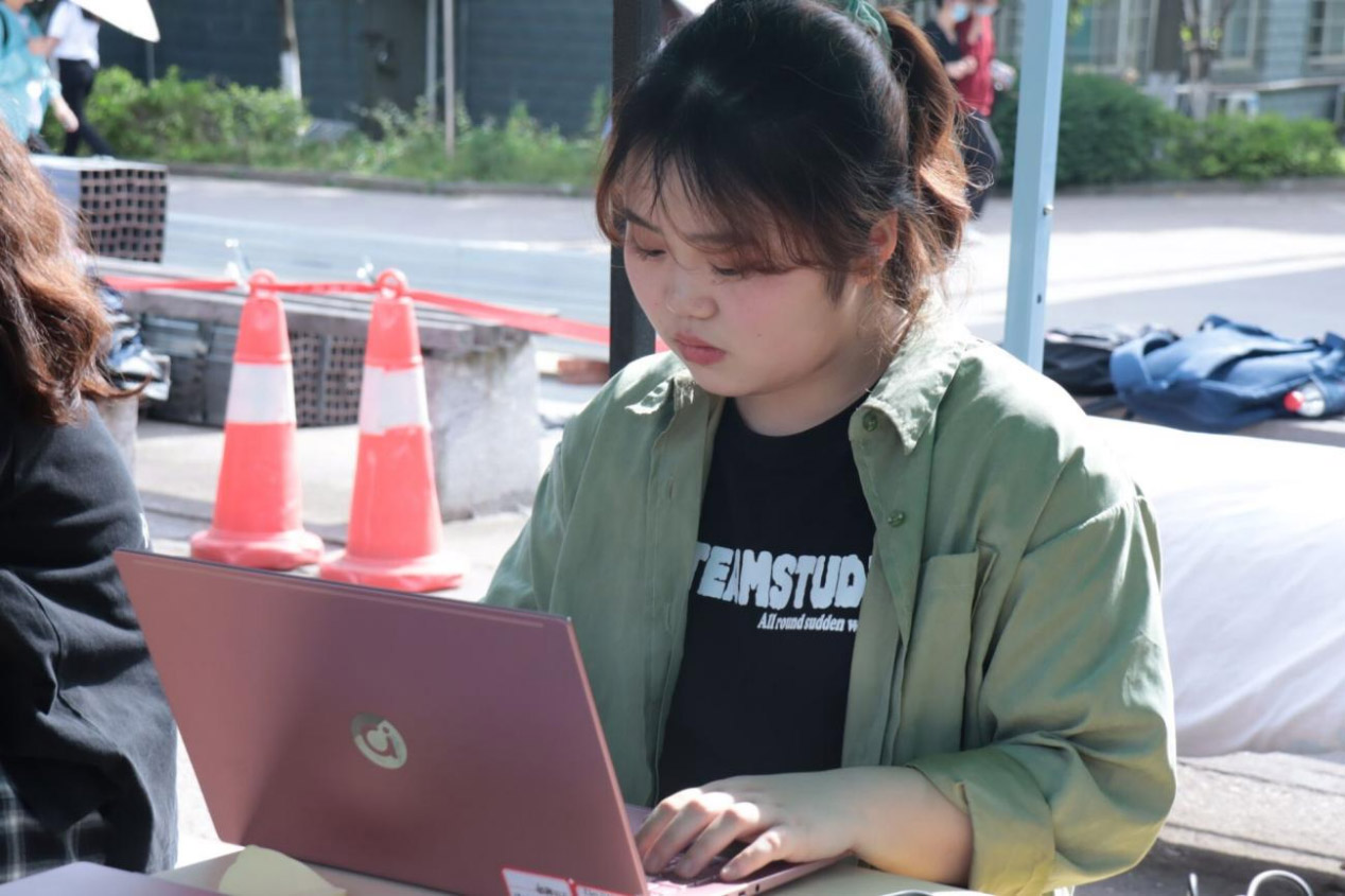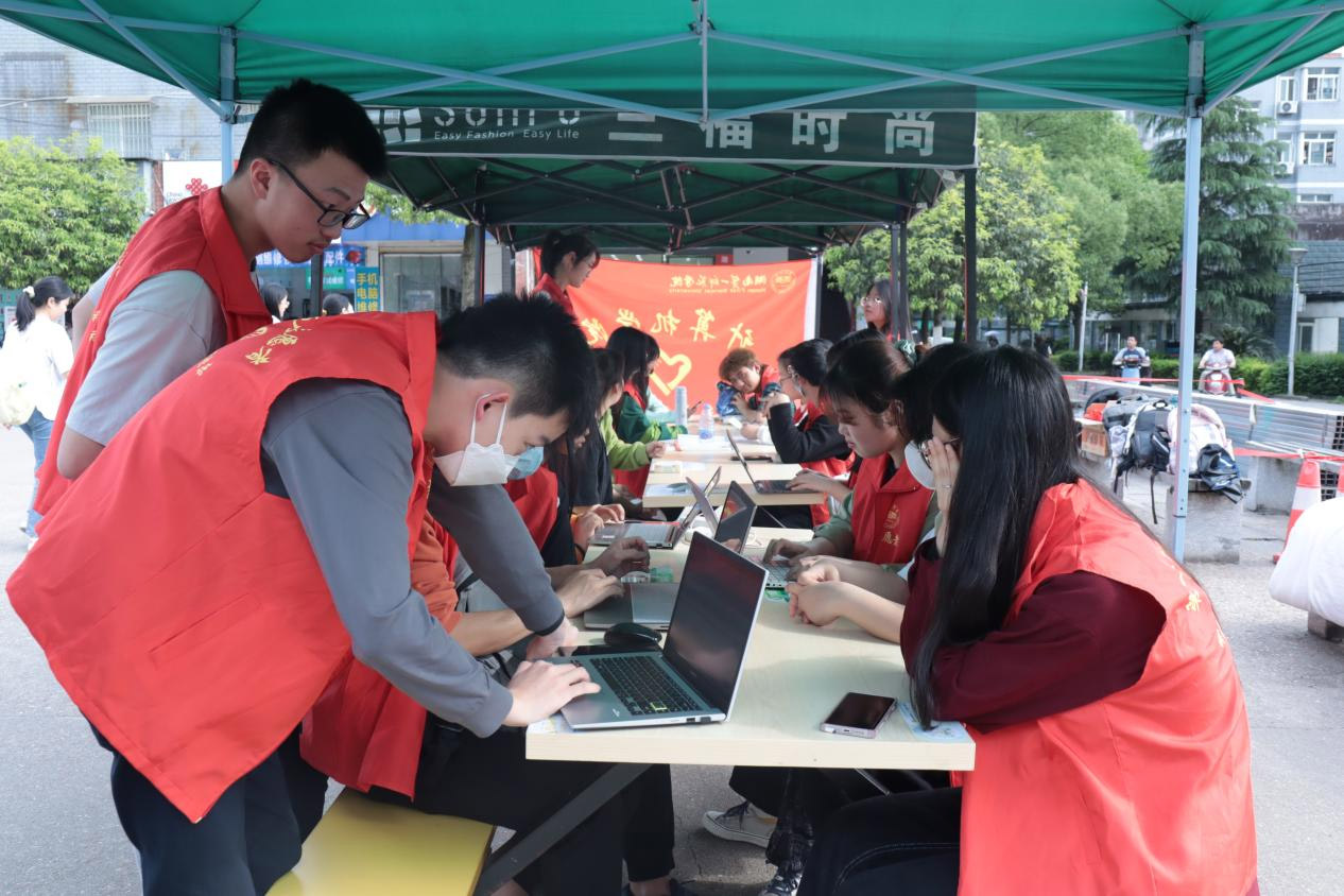 维修现场,电脑E家人成员热心帮助前来维修的同学维修电脑。现场出现了一位同学的电脑无法下载任何软件的情况,但电脑E家人成员还是轻松的解决了问题,这位同学说:“真的非常感谢你们,之前我找了许多办法都无法解决这个问题,有你们真好啊!”从同学们的话语中看到了此次活动的意义以及同学们的支持度,同时感受到了疫情封校生活下同学之间的互相帮助。
