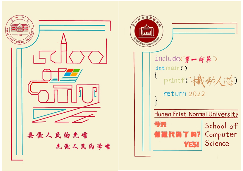 大赛收到原创作品21份,五份作品从中脱颖而出。其中,21级计科3班张任也同学以校徽、校训为主体元素,并巧妙融合C语言代码设计出的帆布包,简洁大方、创意新颖;21级881教技班刘靓同学设计的穿着太空服的智能机器人,生动活泼、富有趣味;21级计科3班李颜林同学则借以ASCII、Python、C、JAVA等多种编程语言为元素设计出的徽章,着重突出了伟德官网的课程特色;21计科1班刘博毓同学与21教技1班罗雅婕均选择以我校标志性建筑——钟楼为背景元素,设计出了包括明信片在内等一系列精致美观的学院周边。