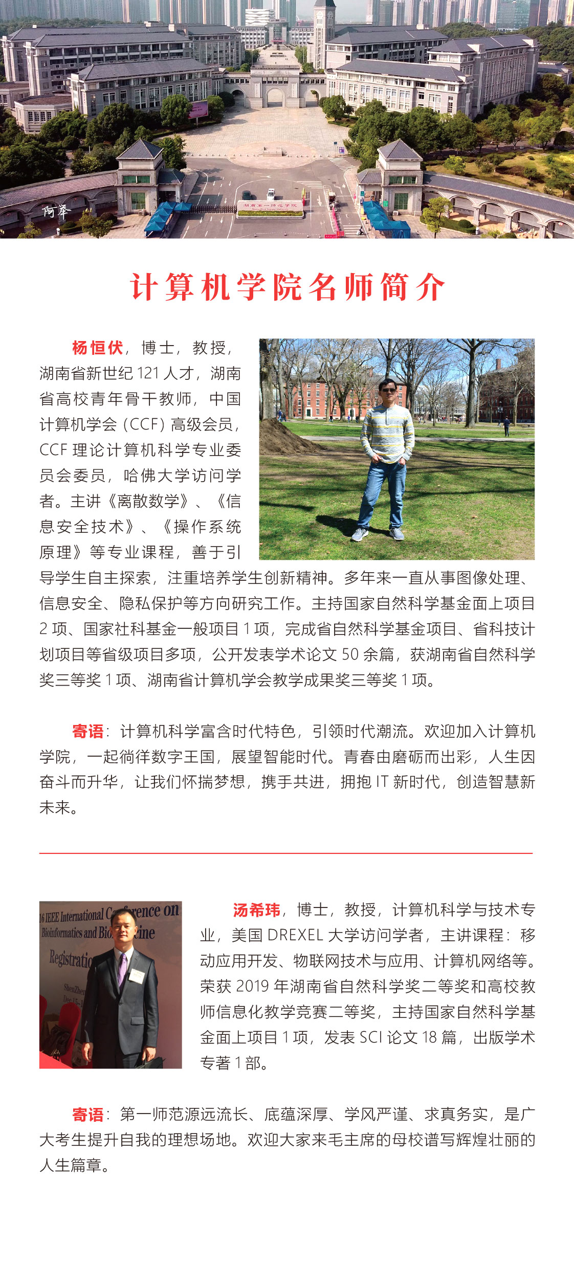 学院立足长沙、面向行业、依托企业、服务区域,主动对接国家和区域经济社会发展需求,以“一四”战略为指引,全面落实 “两坚持两拓展”办学思路,坚定不移地走 “特色鲜明的师范大学”发展之路,确立“建设一流学科,组建一流团队,引育优秀人才,争创优质成果”发展目标,切实履行做大计算机类学科的光荣使命。
