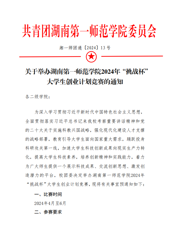 关于举办2024年“挑战杯”大学…南第一师范学院选拔赛的通知(1).pdf