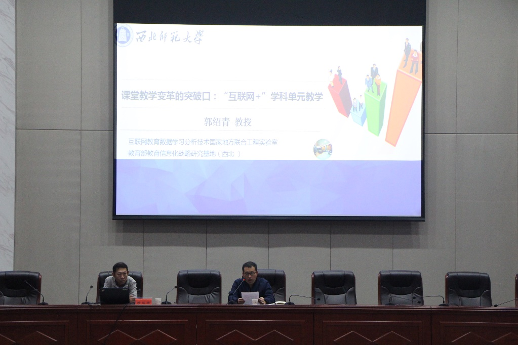 9月22日,西北师范大学智能教育研究院院长、互联网教育数据学习分析技术国家地方联合工程实验室主任、博士生导师郭绍青教授应邀来伟德官网在百熙楼228会议室开展学术讲座。我院全体教师、部分学生代表聆听了讲座,讲座由我院院长满君丰主持。
