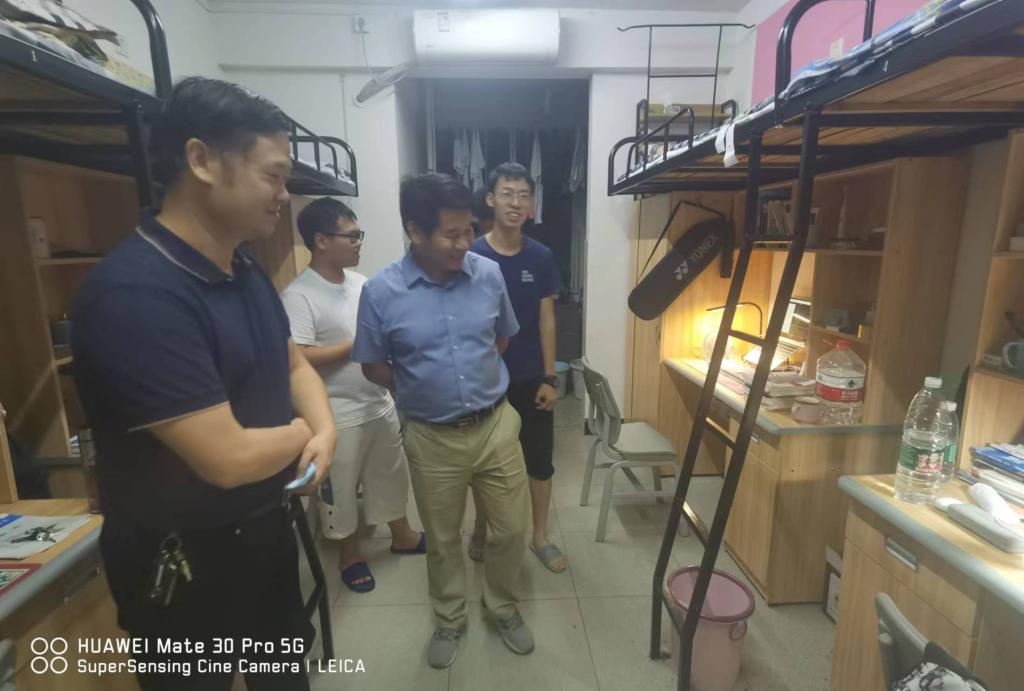 9月21日晚,副校长周发明在伟德国际英国党委书记刘立勇、副院长何向阳、院党委副书记陈奕和全体辅导员的陪同下,来到田径场看望军训学生。对军训学生的晚训表现给予了高度评价,慰问了现场因病无法参加晚训的后勤军训见习学生。周发明一行还查看了我院学生寝室,了解同学们的生活和学习情况,重点询问了同学们英语四六级考试情况以及专业课程作业情况。周发明对我院寝室内务卫生及寝室浓厚的学习氛围给予了肯定,勉励同学们要继续保持良好生活习惯,勤奋学习,争做时代新人。