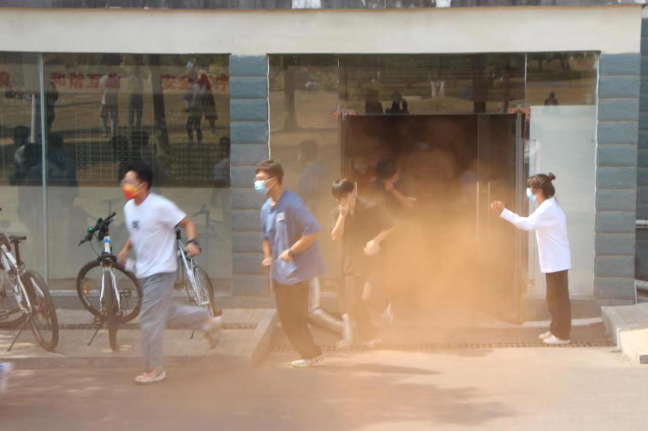 随着警报声的响起,全体人员从各栋宿舍迅速撤出,疏散到了安全区域。整个疏散演练过程严肃、认真、迅速、有序。演练结束后,消防宣传人员针对演练进行总结讲评,并结合具体案例向师生们讲解了消防常识,提醒大家要树牢消防安全意识,留意身边的消防安全隐患,发现消防安全问题要科学有效处理。