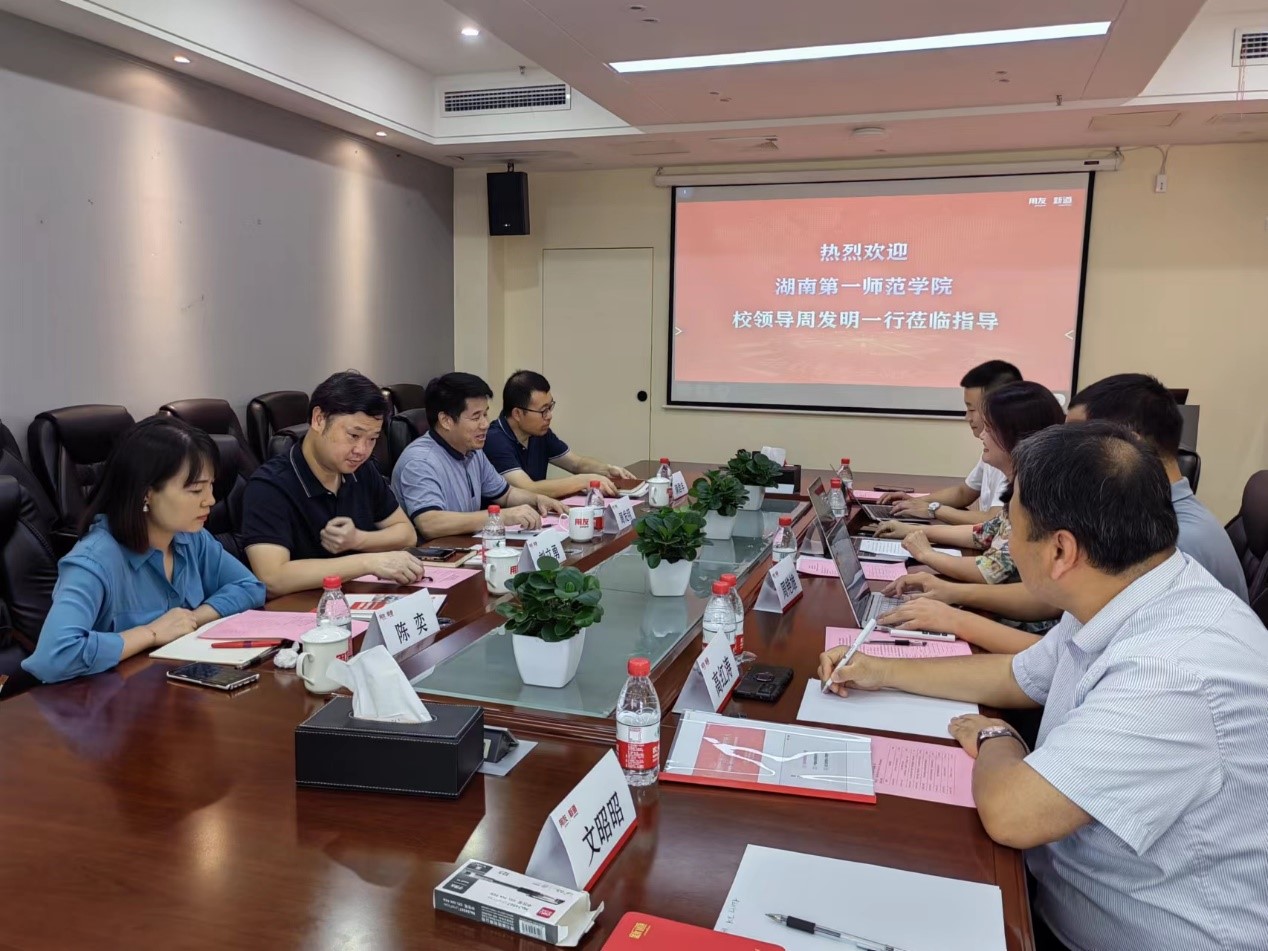 罗姣介绍了用友的业务、服务湖南当地企业数字化转型的情况及企业最新的人才需求现状。她指出,新道科技作为用友集团旗下专门服务院校的平台型教育服务企业,通过技术创新、内涵服务、服务创新等方式为院校构建校企合作、产教融合新范式,共建未来技术学院和现代产业学院。新道科技新工科教育规划顾问高红涛就“工业互联网”赋能学校新工科专业建设给周发明一行做了详细汇报。湖南用友软件公司高级咨询顾问周艳雄就目前企业数字化转型遇到的困境、湖南本地企业数字化发展的现状、企业数字化发展对人才的需求进行了详细介绍。我校伟德国际英国院长满君丰表示,希望在学院现有专业建设、新专业申报、课程建设、师资赋能、学生实习就业、产业学院等方面和公司开展更加深入的合作。