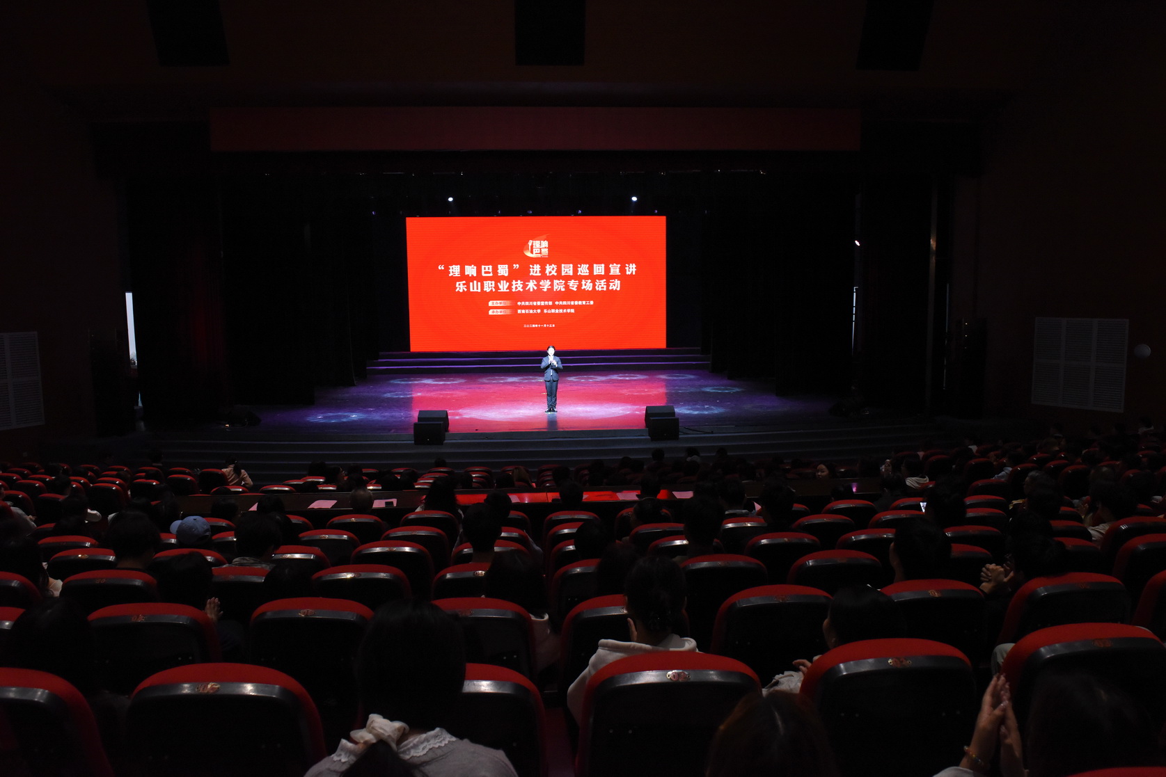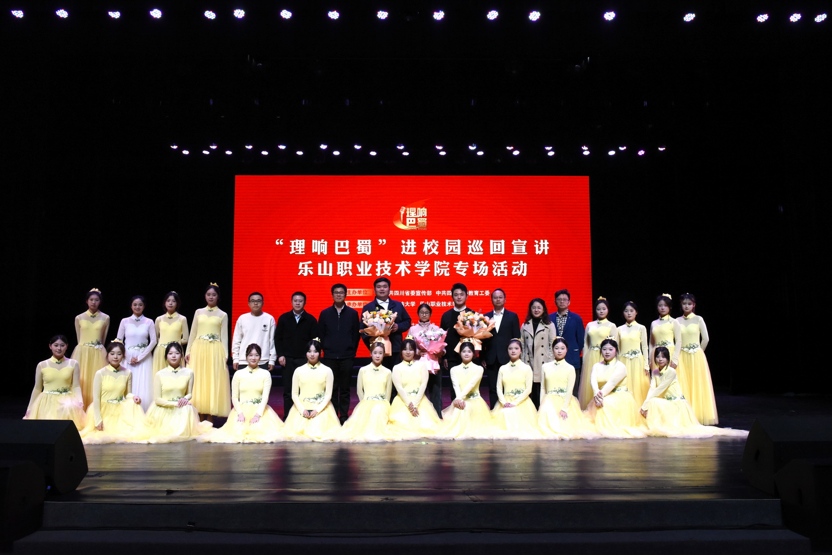 “理响巴蜀”进校园巡回宣讲活动采取“宣讲+文艺”的形式,穿插了beat365英国官方网站青江艺术团表演的青春歌舞《春华秋实》和吉他弹唱《我爱你,中国》、乐山师范学院音乐学院师生演奏的民族器乐《盛世国乐》。