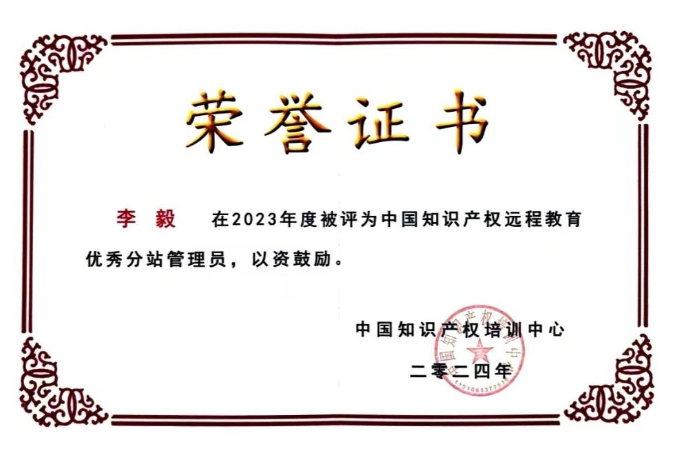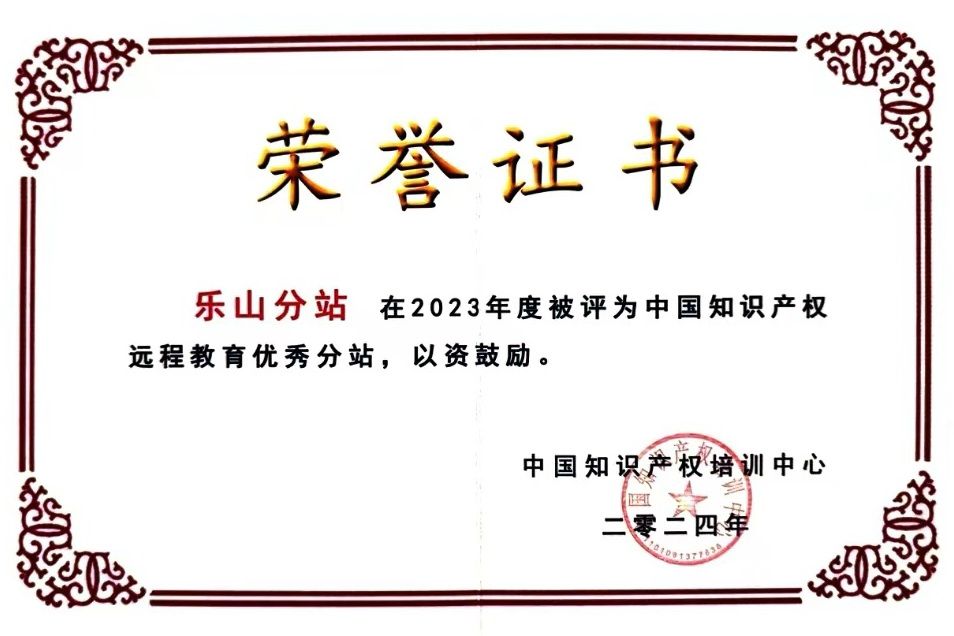 12月10日,经中国知识产权培训中心考核, 乐山分站荣获2023年度中国知识产权远程教育优秀分站,科技处李毅老师被评为2023年度中国知识产权远程教育优秀分站管理员。