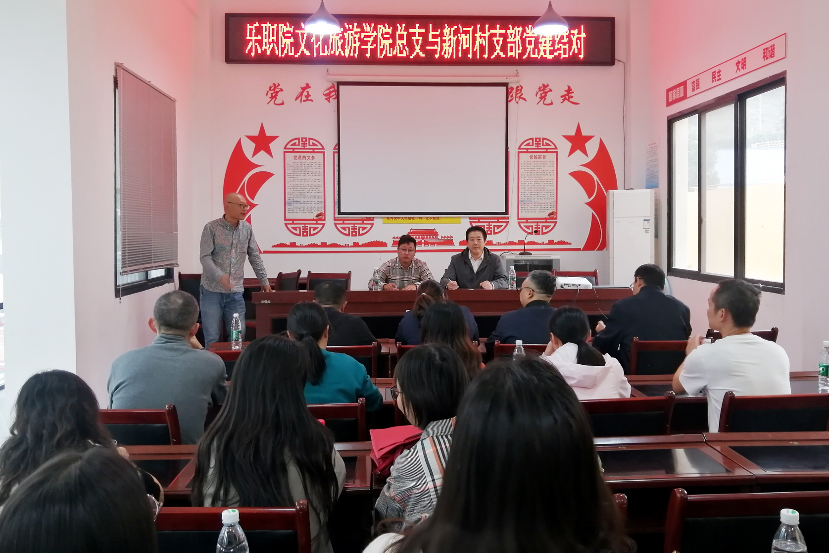 在新河村,校村党支部结对共建协议签订仪式在该村村委会议室举行,文化旅游学院党总支书记朱文彬、新河村党支部书记鲁克阿军在协议上签字。双方将在组织建设、队伍建设、党建发展、解决困难等方面加强合作共建,提升结对党支部党建工作水平,达到“结对抓组织建设,共建凝聚群众人心,帮扶促乡村发展”目标。