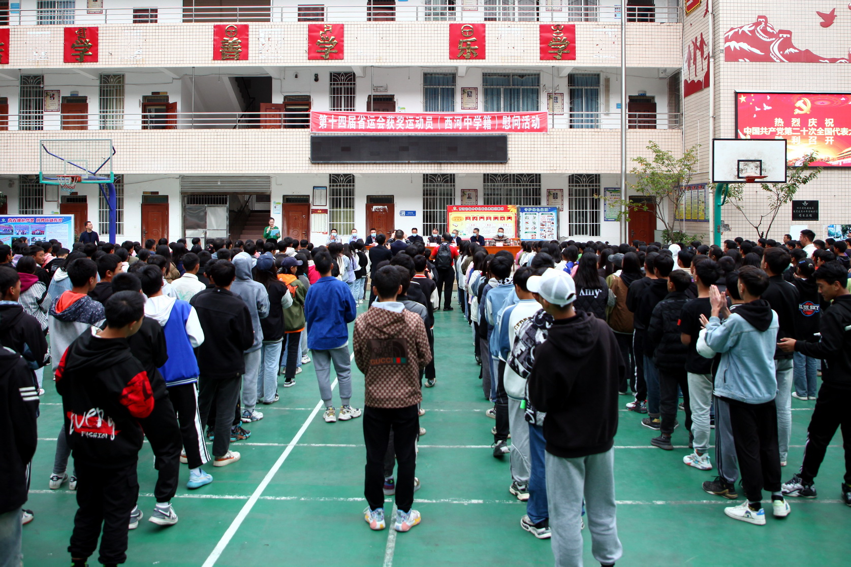 慰问仪式上,刘忠向输送两位优秀运动员的西河中学表示感谢,希望西河中学师生以此为契机,培养输送更多更好的优秀运动员。同时勉励两位学生,继续发扬奥林匹克精神,取得更好的成绩。刘忠、张学河、周芹分别为西河中学和两位运动员送上了慰问信。西河中学校长、冠军运动员原班主任作了讲话,吉胡彝信、洛子阿叶分别在仪式上进行了发言。