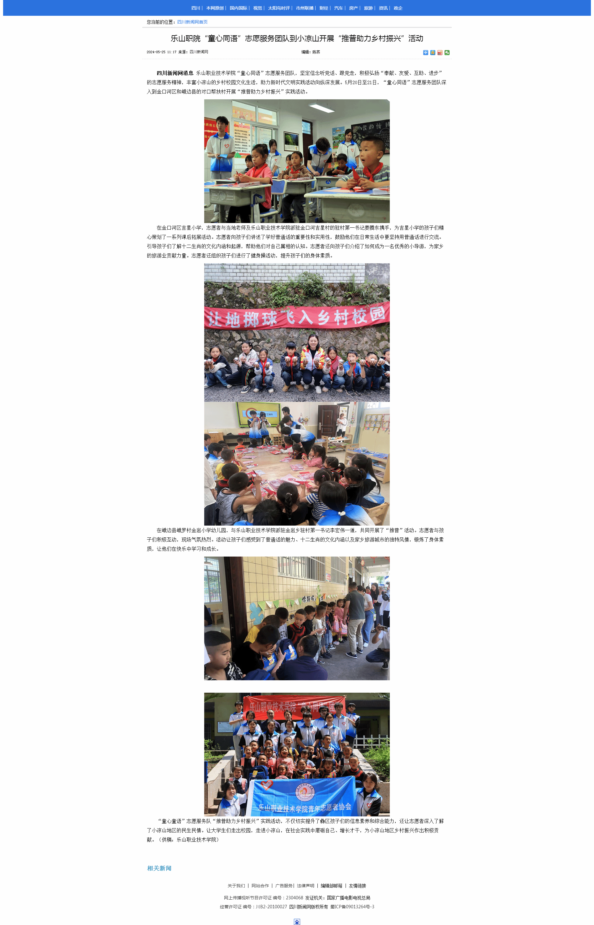 四川新闻网:乐山职院“童心同语”志愿服务团队到小凉山开展“推普助力乡村振兴”活动
