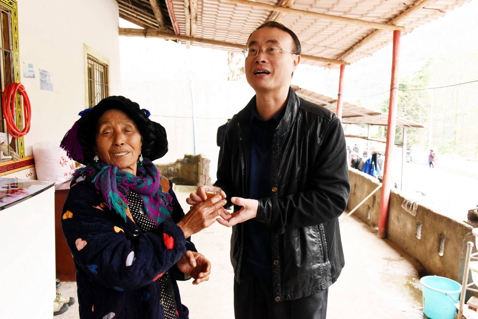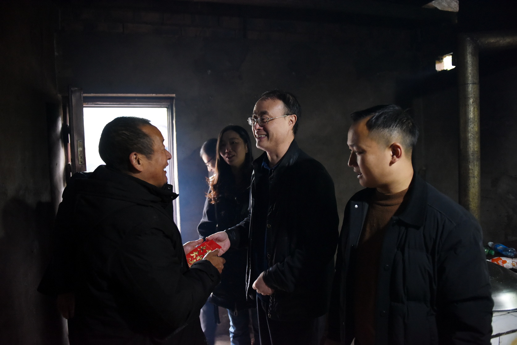 11月24日上午,刘忠一行来到了峨边彝族自治县金岩乡俄罗村,在村委会为19名学生家长颁发了奖学金并察看防撞墙兼文化墙的建设情况,听取驻村干部汇报有关防撞墙“防车祸、防摔伤、拓展宣传、改善环境”工作成效。随后实地走访慰问了3户脱贫户。走进彝家,刘忠与他们话家常、问冷暖、交心声,仔细询问健康状况、经济收入以及政策落实情况,并为他们送上节日慰问金,将学校的温暖和关爱传递到家,彝族老乡热情地递上自制的彝家泡水酒,分享他们脱贫后的幸福生活和过年的快乐心情。峨边彝族自治县教育局局长廖学军参加调研。
