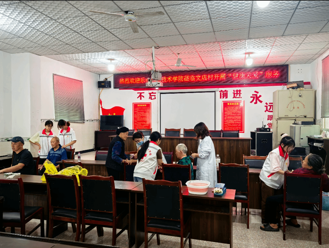 “现在请放松,慢慢告诉我你的困惑”,在文店村党群服务中心,心理健康教育与咨询中心老师正在一对一地为村民提供情绪咨询,通过轻柔的语言、信任的神情、耐心的倾听,舒缓村民因经济压力、家庭压力等产生的负面情绪。护理康养学院“白衣卫士”师生志愿者团队针对当地村民身体疼痛、亚健康状态等开展“中医养生小课堂”宣讲,并现场为居民提供健康咨询、针灸、艾灸、推拿按摩等医疗卫生服务。