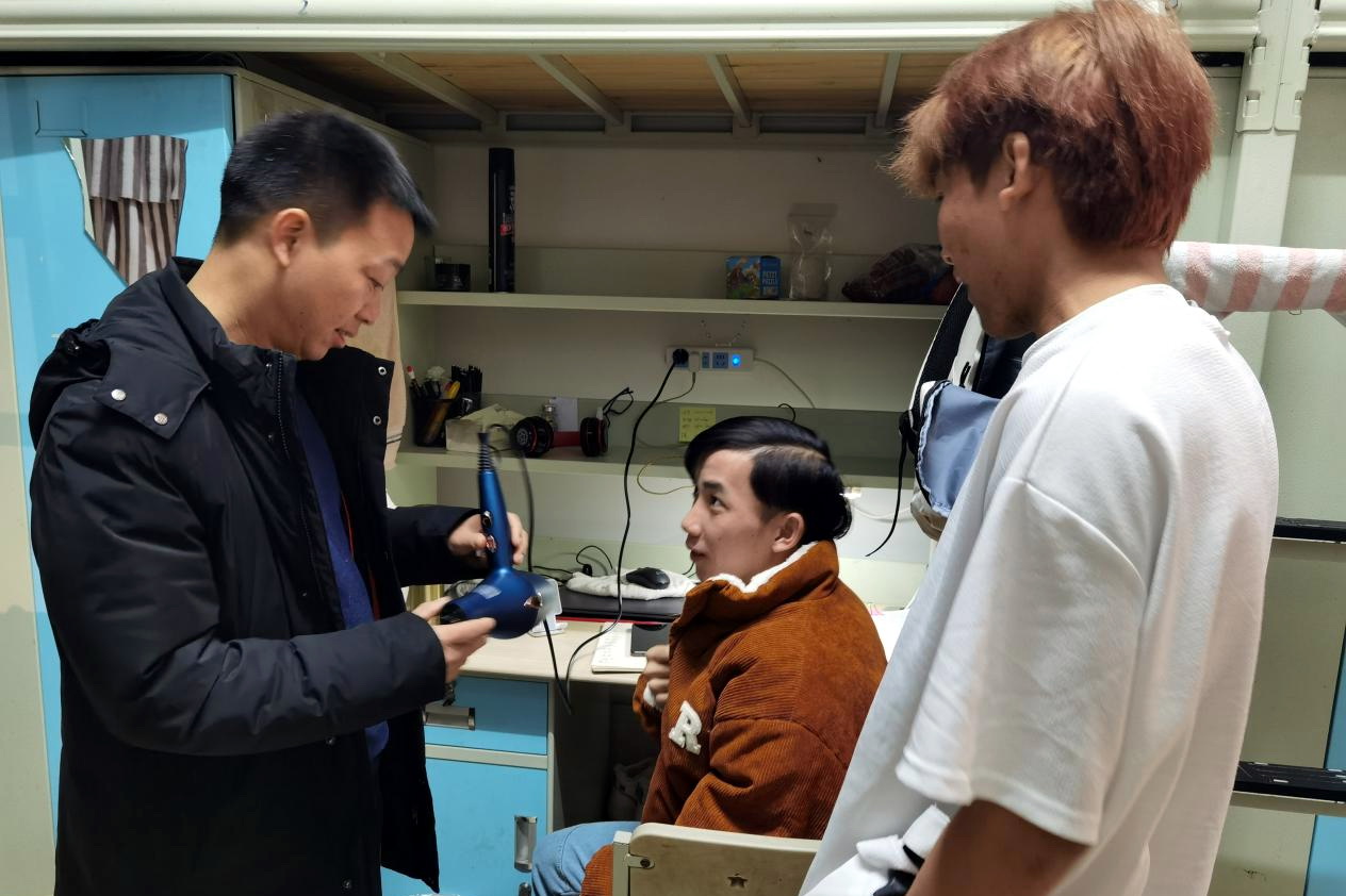 在宿管值班室,封家福查看了留学生晚寝签到表。封家福要求,在安全管理上要严格执行公寓门禁制度,做好公寓日常巡查,发现紧急和突发情况第一时间上报。要加强公寓学生教育和提醒,做到人走断电,严禁私拉电线,规范使用电器设备等。