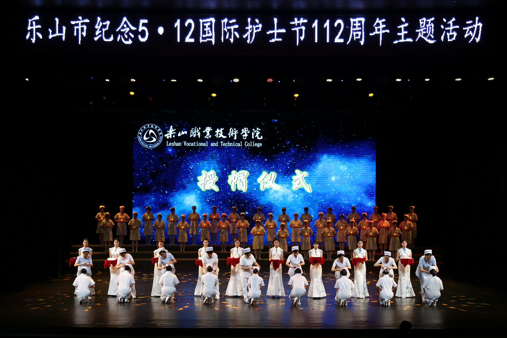 本次活动受到了乐山市委、市政府、市政协领导的高度重视,乐山市委常委、统战部长席代金,市政府副市长沙万强,市政协副主席刘淑玉,乐山市卫生健康委党组书记、主任曾伟等多位领导亲临活动现场。市卫生健康委、各县(市、区)卫生健康局领导,市直医疗卫生机构及二级以上医疗机构的院领导,市医学会、市中医药学会负责人,市护理学会理事长、常务理事、各专委会负责人以及受表彰的50名“乐山好护士”也出席了本次活动。beat365英国官方网站院长刘忠、护理学院院长张知贵携护理学院师生代表1500余人参加了纪念活动。